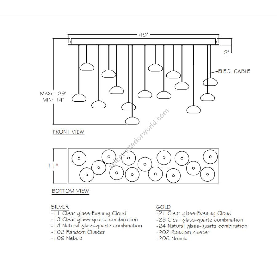 TBorn from the core elements of Earth, inspired by the beauty of nature, and created by the sculpting hands of master glass artists. A collection of precious drop lights as wondrous and unique as nature itself. Available in standard silver leaf or gold-toned silver leaf finish, and your choice of five hand-blown glass options. Custom finishes and custom sizes available on all canopies.