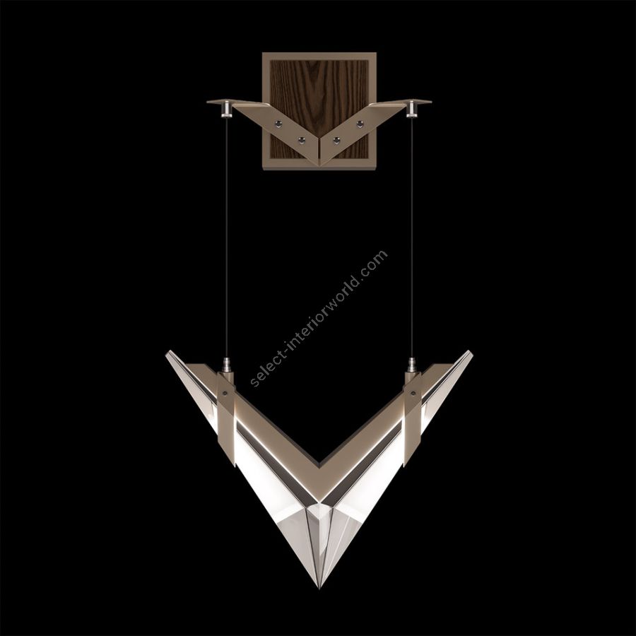 Inspired by the bold geometry of chevron shapes and the sleek lines of modern aircraft, Blade brings a sense of motion and precision to lighting design. Adjustable sconce features cut crystal and integrated LEDs in Standard Black Iron or Champagne finish. Dark Walnut stained wood featured on select items adding warmth to the metal forms.