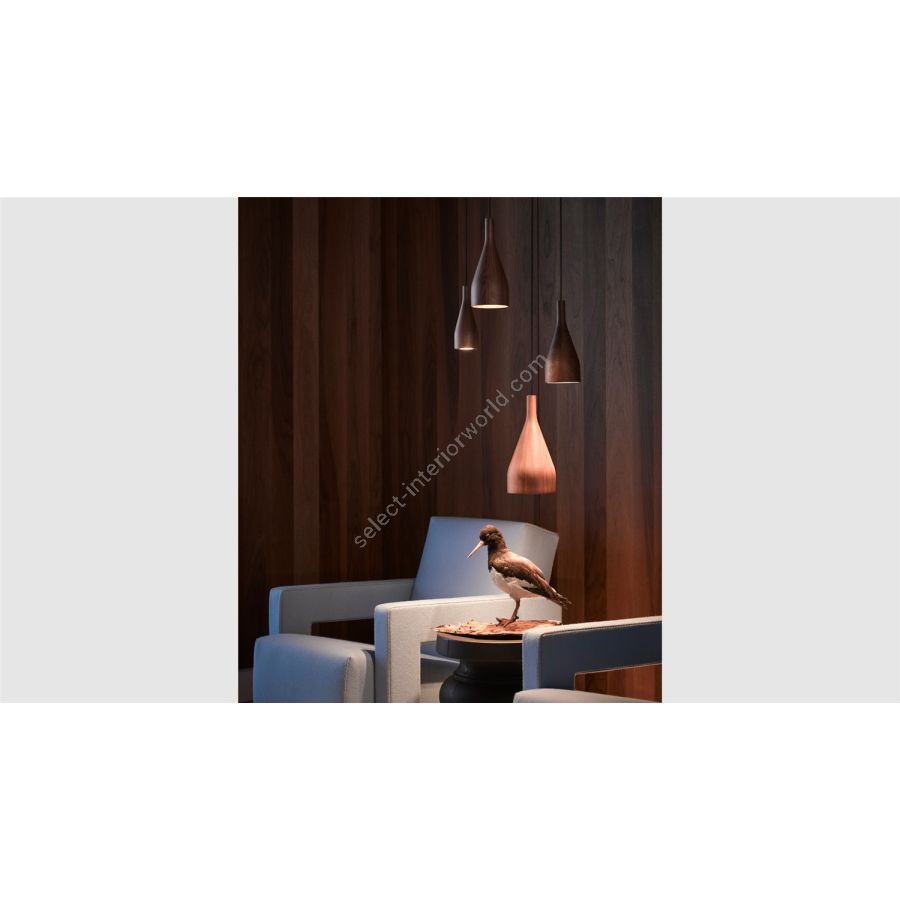 Timber is available in three different sizes (S, M and L) which give a pleasant effect when hung together in a cluster. But they also work deftly when aligned in a row, above a bar or dining table. Thanks to the simple and recognisable bottle shape, the natural look and the purposeful light, the Timber collection meets many needs in both private and project-based