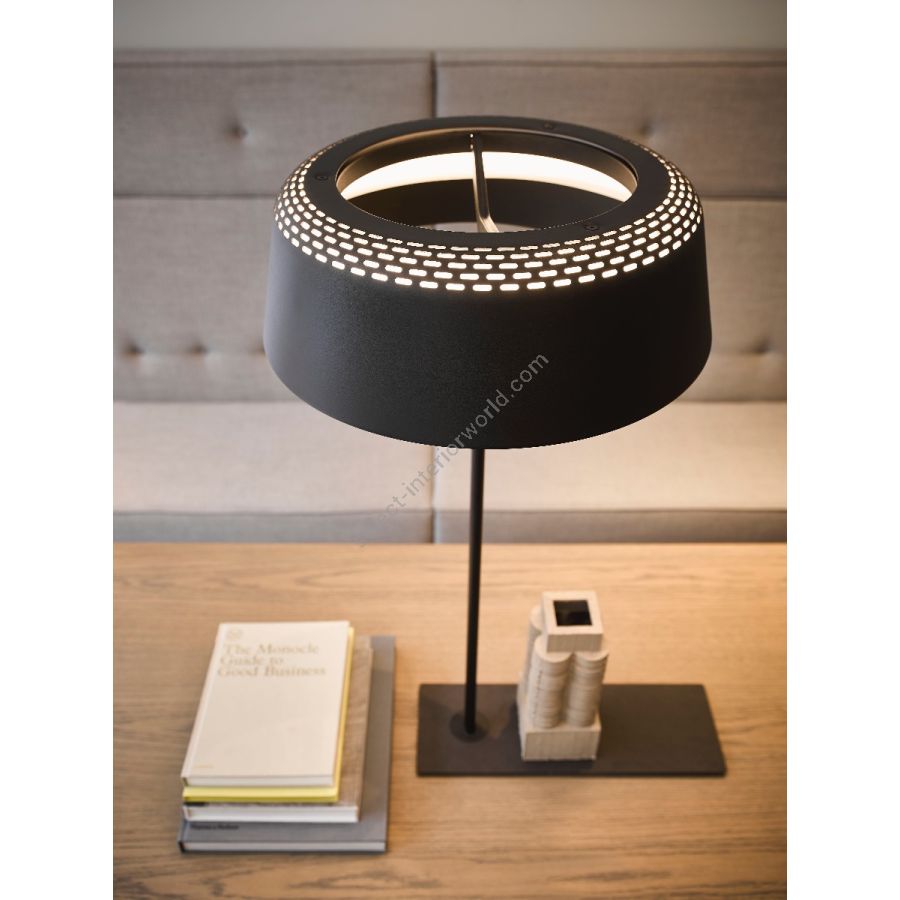 An extension to the Ring pendant is the Ring T1. A table version with a Pin mount or a rectangular base. A timeless design with a minimum of reflecti-on and superb light comfort! Because the LED is cleverly integrated , there is no glare which is ideal for above a desk or communal table. Thanks to the luminaire’s openness it has a fine spread of light. In addition, the even light ensures that there is no hard, unwanted shadowing. The perforations in the steel provide a subtle decoration and at the same time allow the light to pass through. The pattern on the shade is characteristic of the design. Ring is a subdued pendant lamp with unique details and therefore widely applica-ble in various interiors. Available in white and black powder coating and on request in any RAL colour.