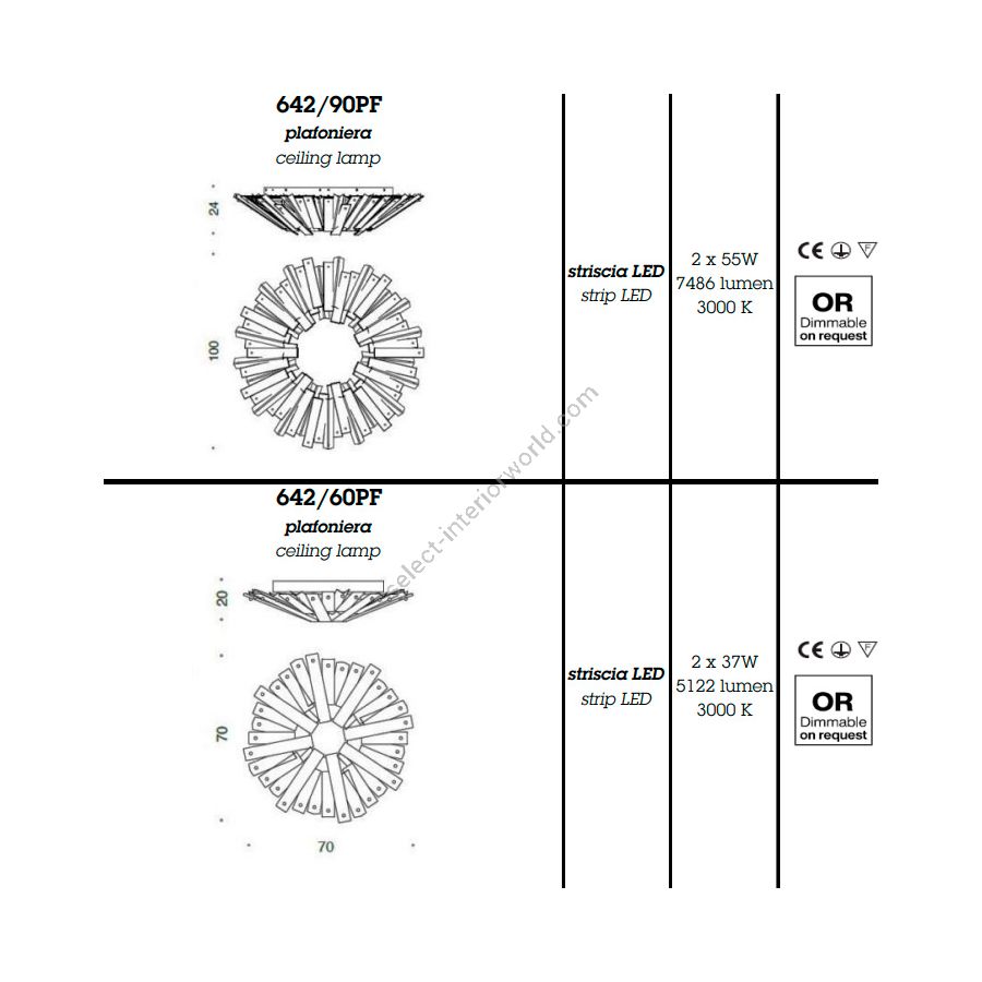 Pulegoso or hammered transparent Murano glass with light gold, black nickel or pure steel metal blades.