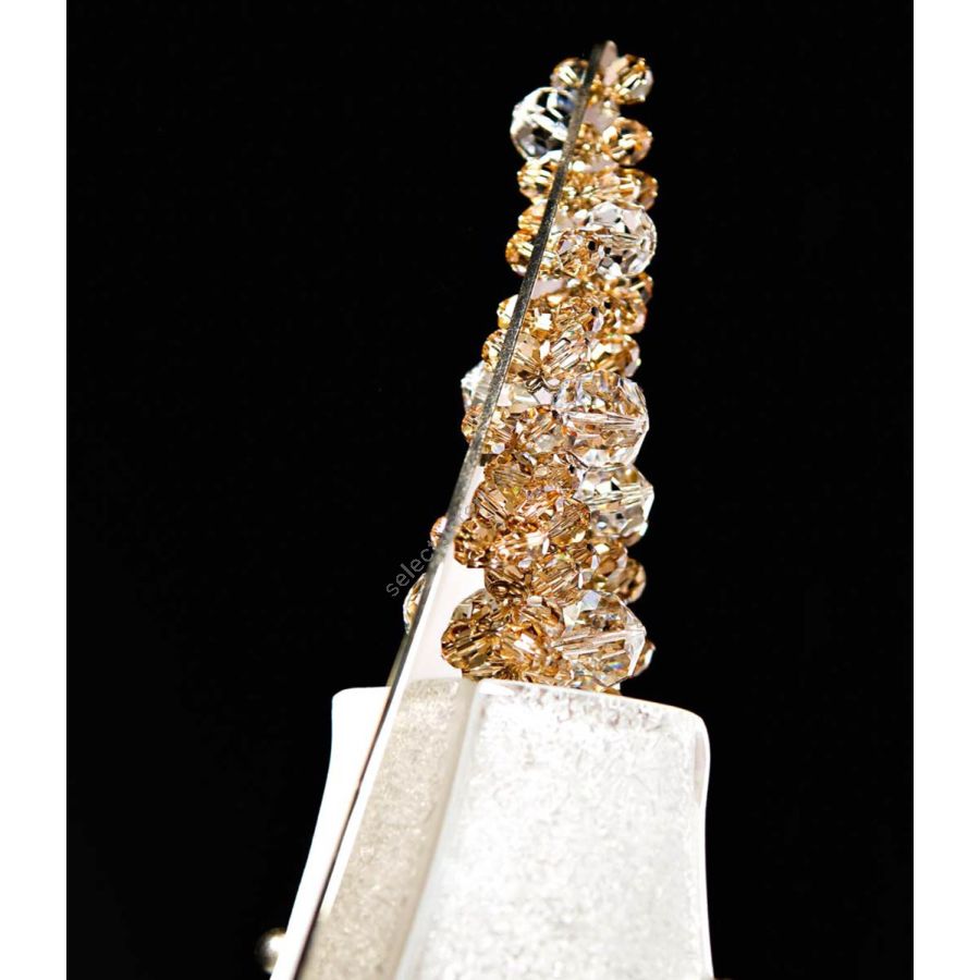 White Murano glass diffusers worked with grit band and wrought effect. The collection is adorned with crystals.
