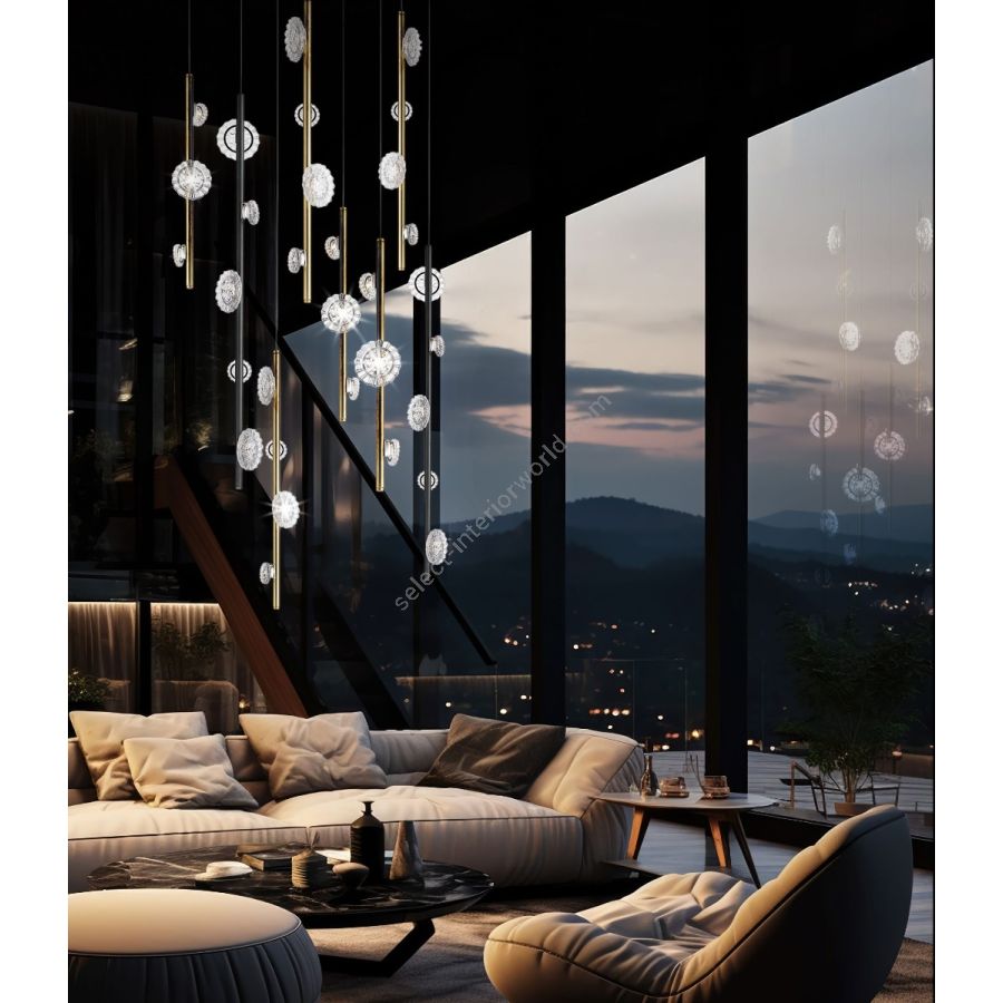 A collection centred on decorative minimalism where Murano glass flowers add sparkle to linear segments.