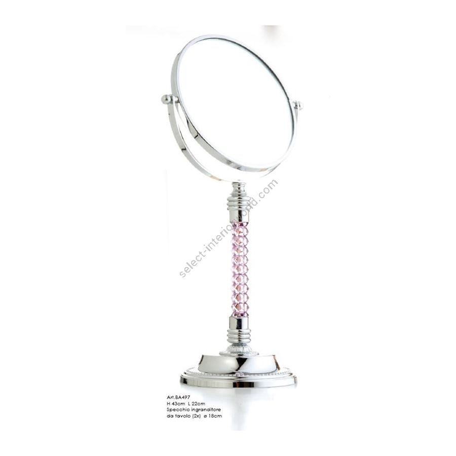 Mirror with magnifying (x2) in brass and pink italian hand-cutted crystal