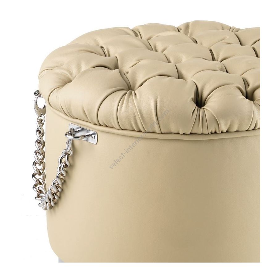 Pouff in eco pelle sand color with chain. Brass metal polished nikel.