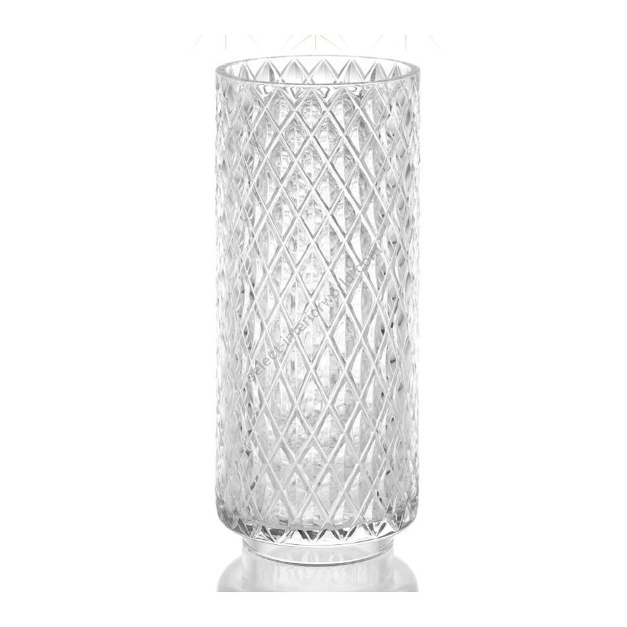 Italian hand-cut crystal set with three-dimensional rhombus pattern. Vase. Functional elements that create an extremely elegant, welcoming and high-value bathroom.