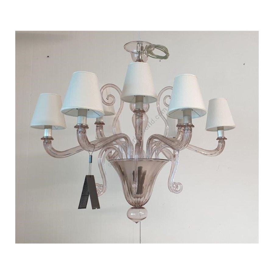 Chandelier in lilac Murano glass with conical lampshade