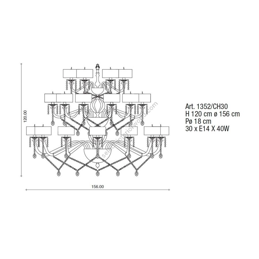 Bulbs: 30 x E14 x 40W| Dimensions (HxWxD): | cm: 120x156x18 / inch: 47.24"x61.42"x7.09" |