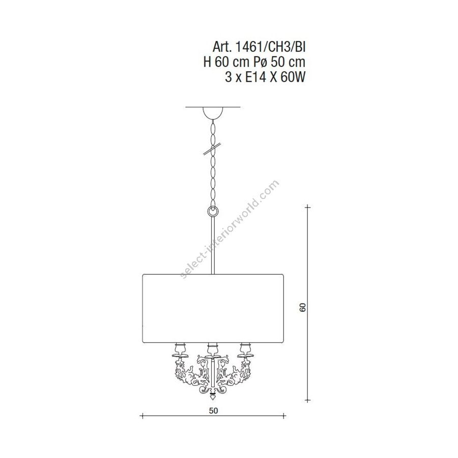 Bulbs: 3 x E14 X 60W| Dimensions (HxWxD): | cm: 60x50 / inch: 23.62"x19.69" |