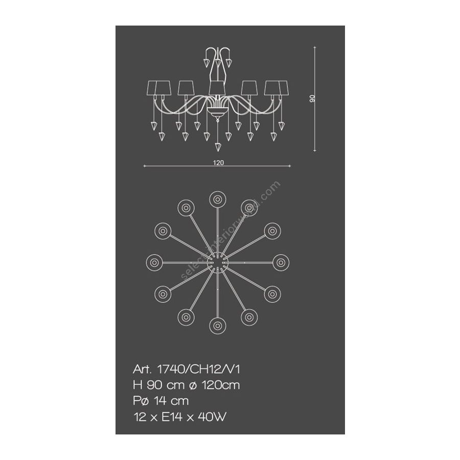 Bulbs: 12xE14x40W| Dimensions (HxWxD): | cm: 90x120x14 / inch: 35.43"x47.24"x5.51" |