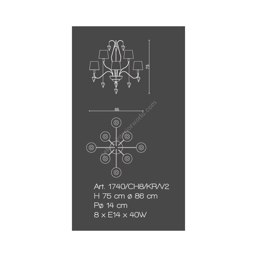 Bulbs: 8xE14x40W| Dimensions (HxWxD): | cm: 75x86x14 / inch: 29.53"x33.86"x5.51" |
