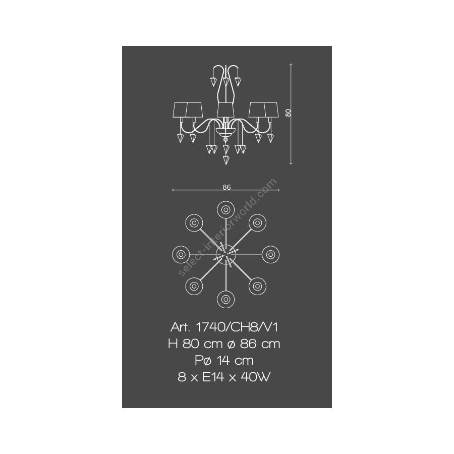 Bulbs: 8xE14x40W| Dimensions (HxWxD): | cm: 80x86x14 / inch: 31.5"x33.86"x5.51" |