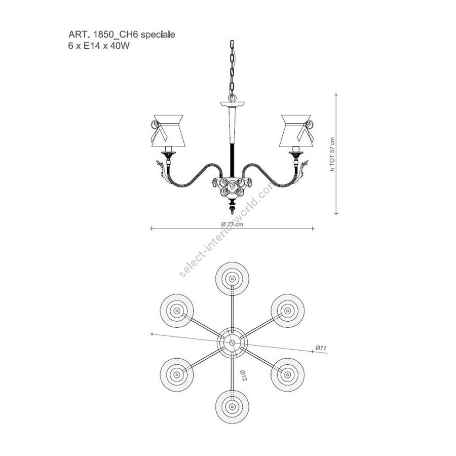 Bulbs: 6xE14x40W| Dimensions (HxWxD): | cm: 57x77 / inch: 22.44"x30.31" |