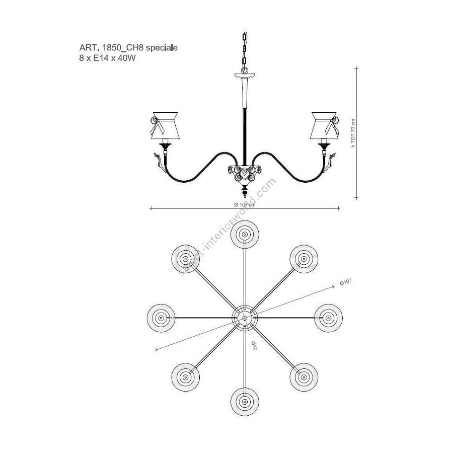 Bulbs: 8xE14x40W| Dimensions (HxWxD): | cm: 73x107 / inch: 28.74"x42.13" |