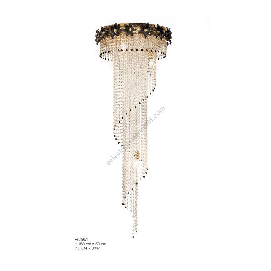Cascade chandelier in Asfour crystals and black Murano glass flowers. Lighting item that diffuses the light with great effect in the surrounding environement creating a warm and welcoming atmosphere.