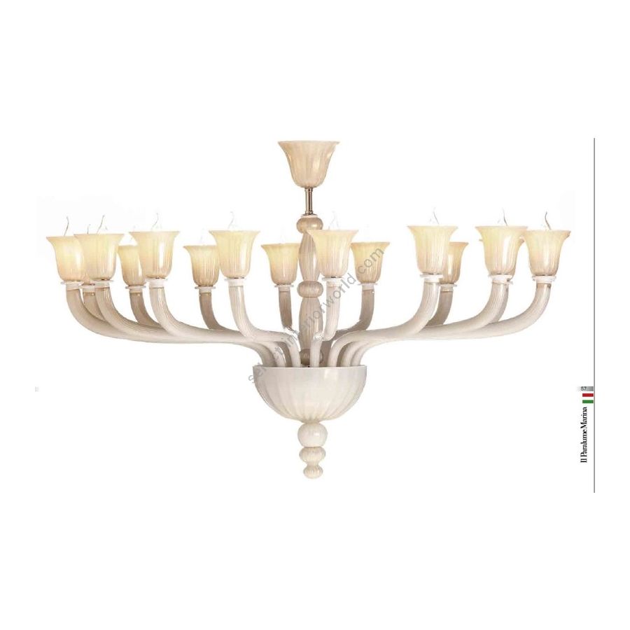 Chandelier with Murano Glass White/gold. Lighting item that diffuses the light with great effect in the surrounding environement creating a warm and welcoming atmosphere.