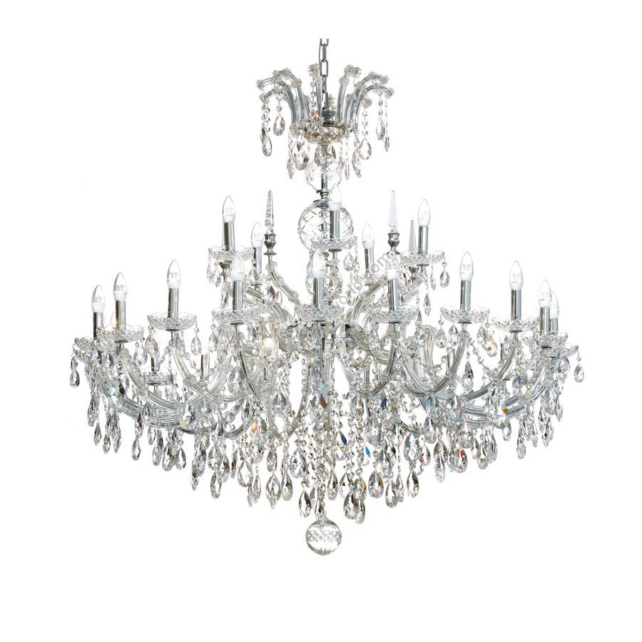 Chandelier "Mariateresa" style with Crystal pendants. Metal frame polished Nikel available also in others colours. Lighting item that diffuses the light with great effect in the surrounding environement creating a warm and welcoming atmosphere.
