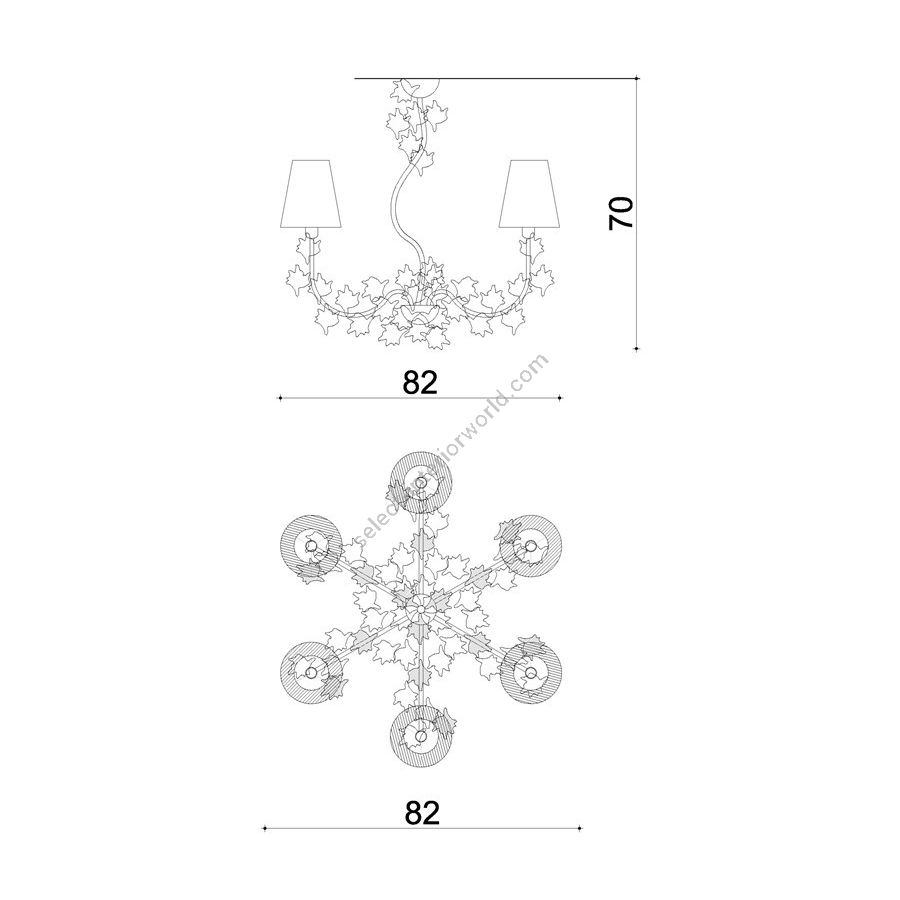 Chandelier with VINE LEAVES in metal and Murano Glass, lampshades in organza. Lighting item that diffuses the light with great effect in the surrounding environement creating a warm and welcoming atmosphere.