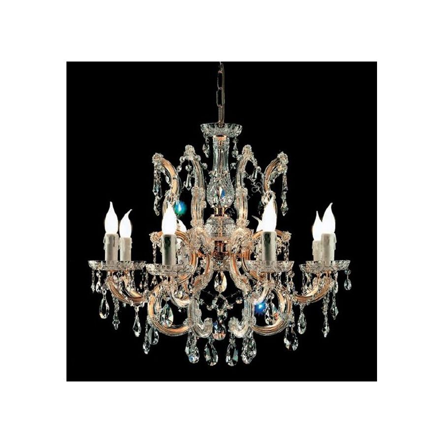 Mariateresa chandelier with Gold plated metal frame covered by transparent glass arms and transparent Crystal pendants. Lighting item that diffuses the light with great effect in the surrounding environement creating a warm and welcoming atmosphere.