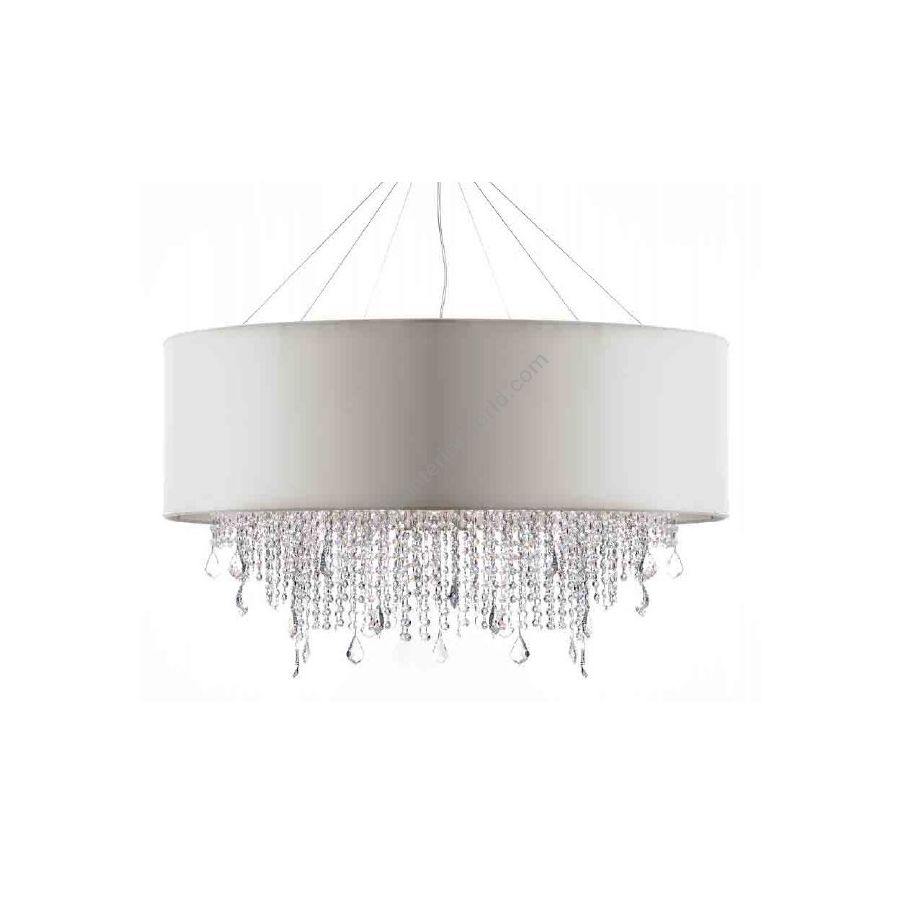 Chandelier with lampshade and Asfour crystals. Lighting item that diffuses the light with great effect in the surrounding environement creating a warm and welcoming atmosphere.