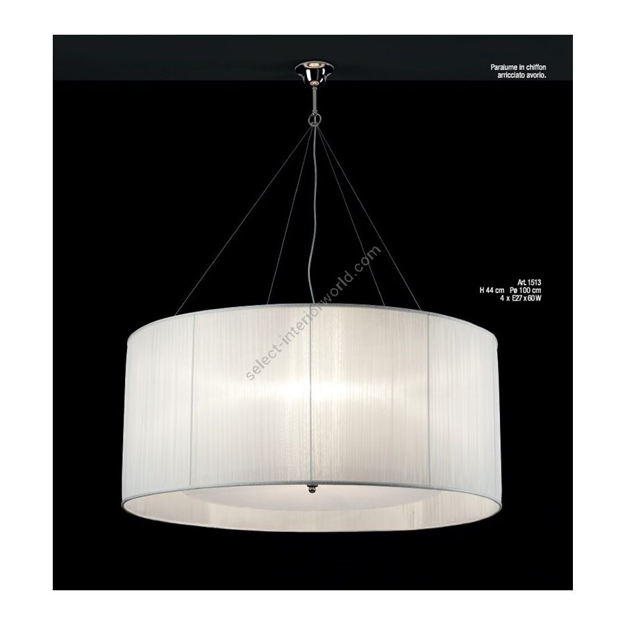 Big ivory chiffon lampshade. Lighting item that diffuses the light with great effect in the surrounding environement creating a warm and welcoming atmosphere.