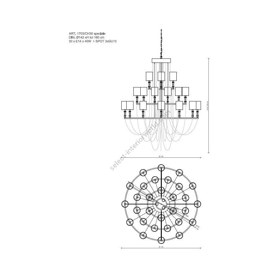 Bulbs: 30x E14 x 25W +3 GU10 Led 10W| Dimensions (HxWxD): | cm: 160x142x12 / inch: 62.99"x55.91"x4.72" |