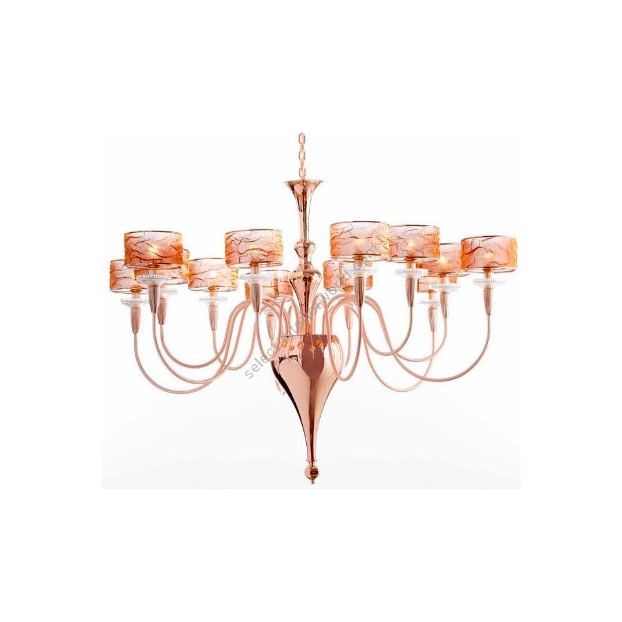 12 lights Chandelier with lampshades in copper metal fiber. Lighting item that diffuses the light with great effect in the surrounding environement creating a warm and welcoming atmosphere. Attention lampshade fabbric out of production