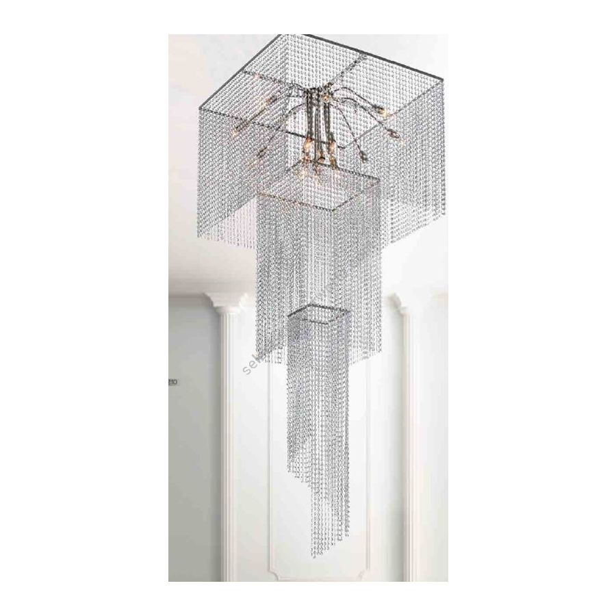 Square Cascade with Swarovski™ crystal elements. Lighting item that diffuses the light with great effect in the surrounding environement creating a warm and welcoming atmosphere.