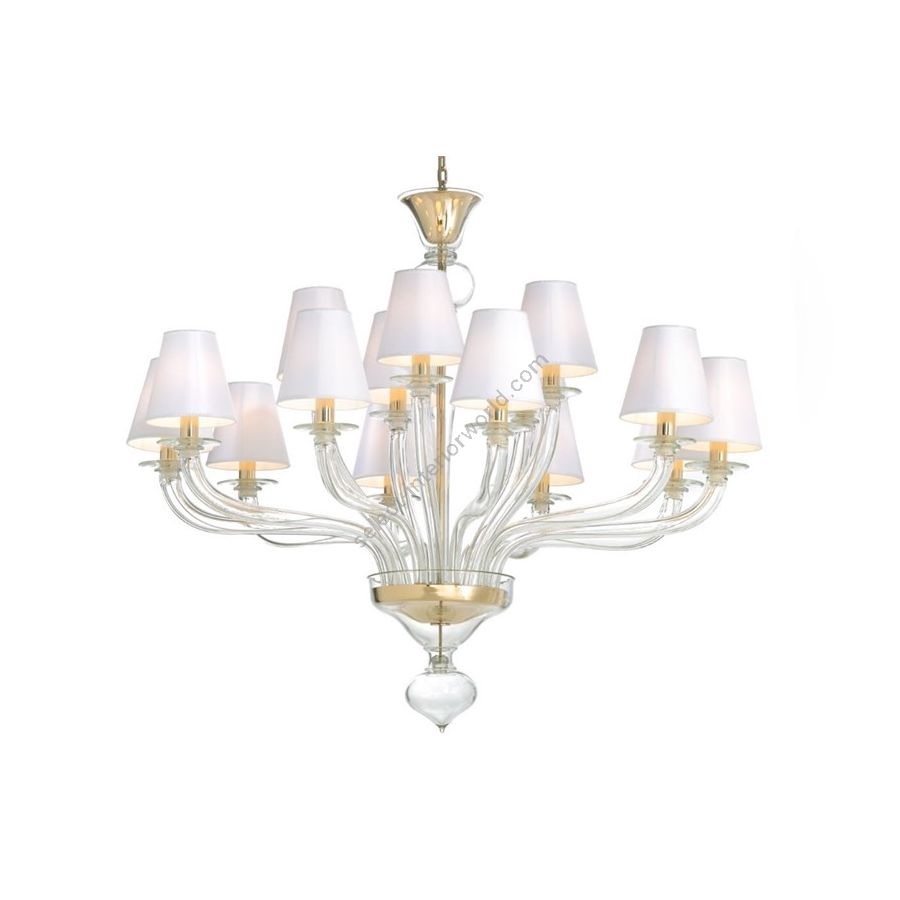 Murano Glass Chandelier in complete trasparent color with lampshades. Lighting item that diffuses the light with great effect in the surrounding environement creating a warm and welcoming atmosphere.