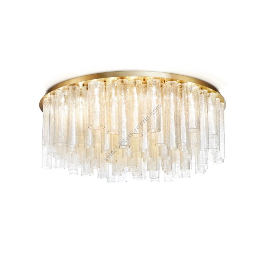 Ceiling lamp in painted old gold and Murano ""Pulegoso""Cylinders. Lighting item that diffuses the light with great effect in the surrounding environement creating a warm and welcoming atmosphere.
