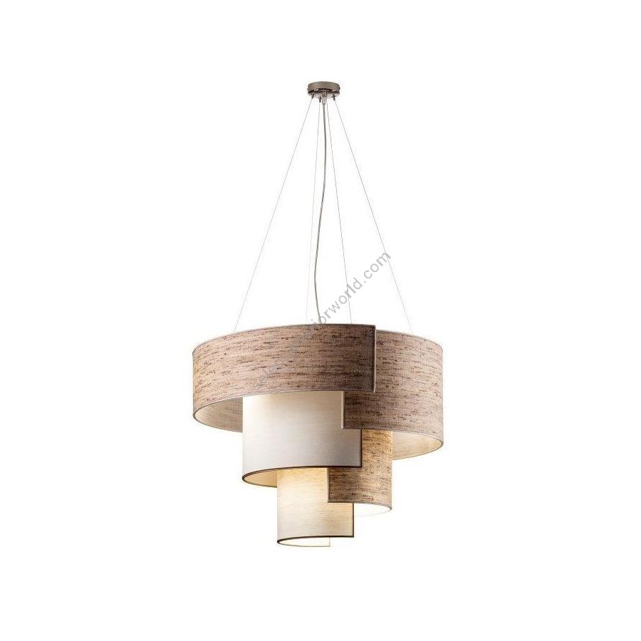 Chandelier in smooth fabric. Lighting item that diffuses the light with great effect in the surrounding environement creating a warm and welcoming atmosphere.