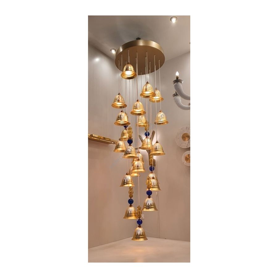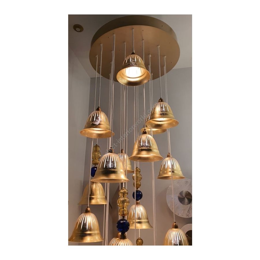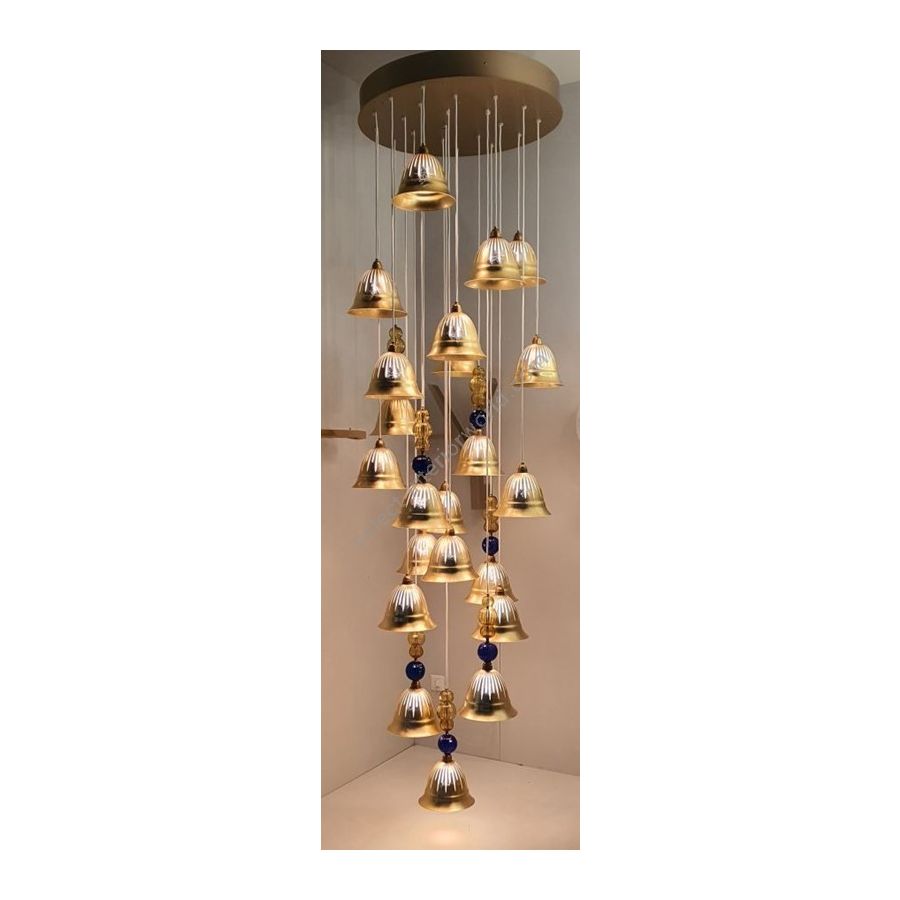 Unique and last piece made of crystal ""bells"" covered with gold leaf. Composition and Murano glass inserts can be changed.