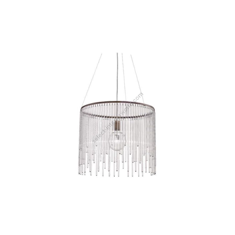 Chandelier with glass small tubes. Lighting item that diffuses the light with great effect in the surrounding environement creating a warm and welcoming atmosphere.