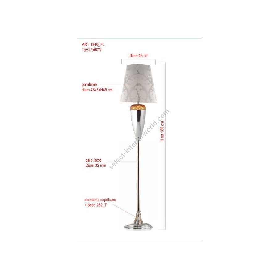 Floor lamp with Ambra Crystal complete with lampshade. Lighting item that diffuses the light with great effect in the surrounding environement creating a warm and welcoming atmosphere.