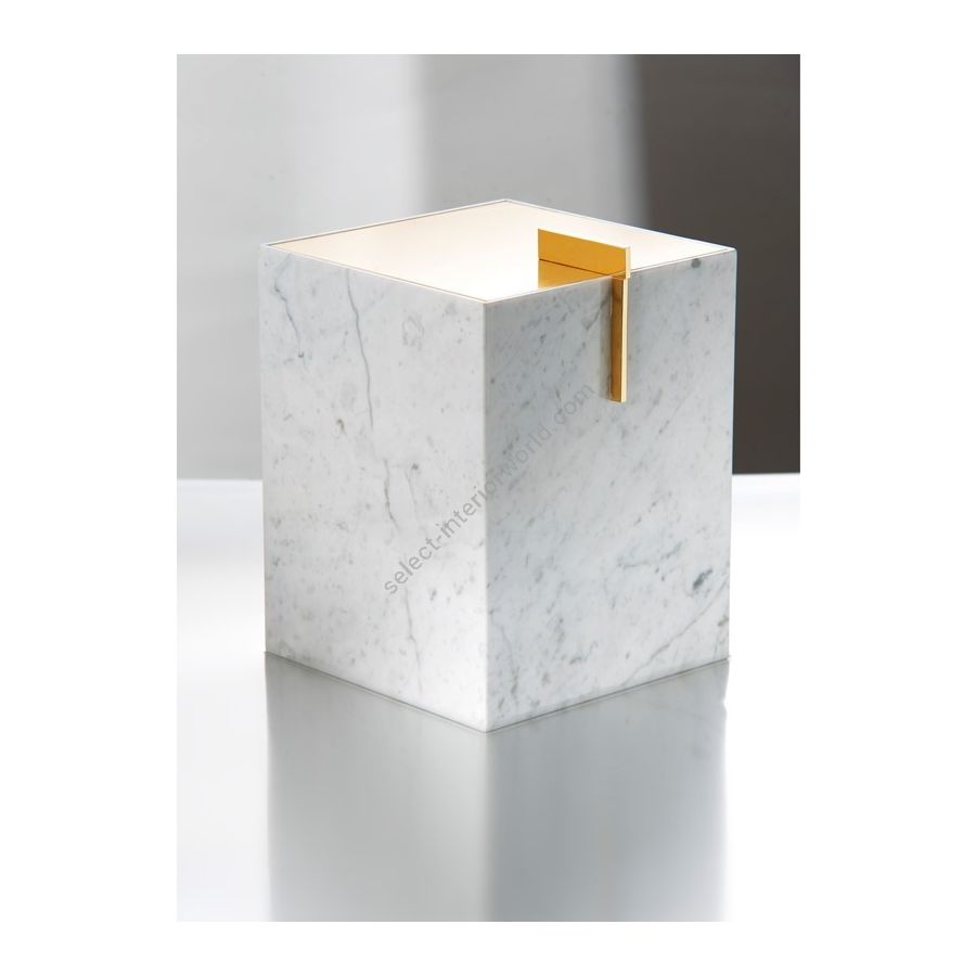 Basket in Carra Marble decorated with gold 24K brass elements. Functional elements that create an extremely elegant, welcoming and high-value bathroom.