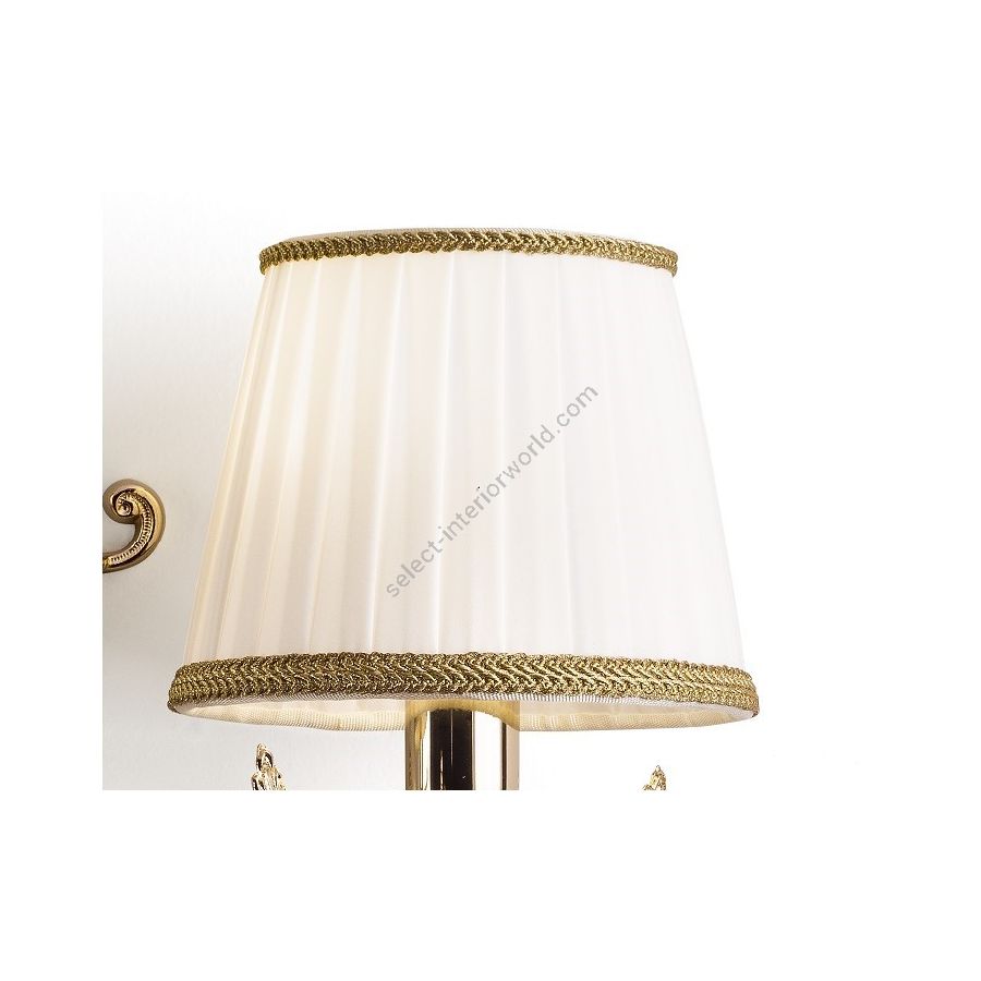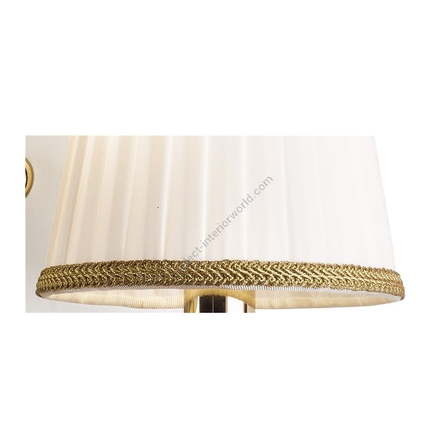 Plisse' truncated cone lampshade, white PVC interior and smooth fabric exterior. Upper and lower gold trimmings.