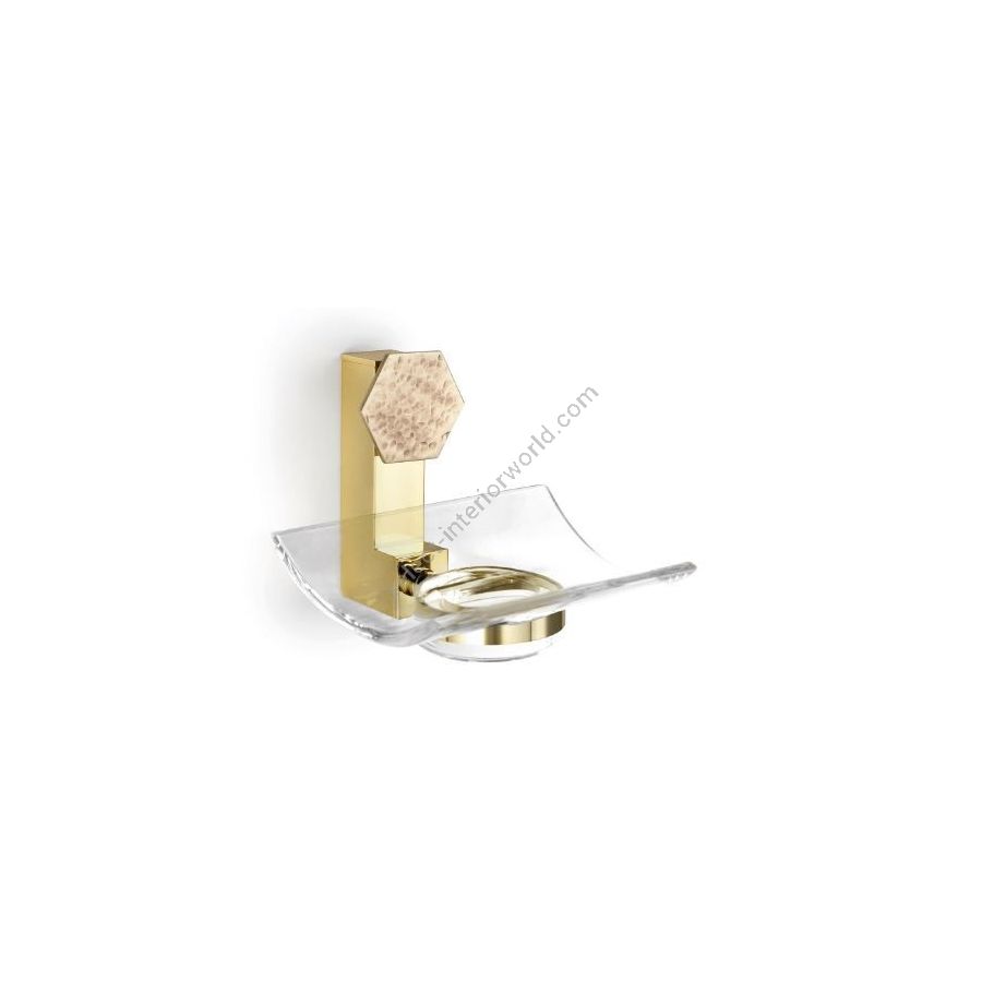 Hexagon collection soap dish holder in crystal and brass finishes GOLD 24K and brunito BR. Functional elements that create an extremely elegant, welcoming and high-value bathroom.