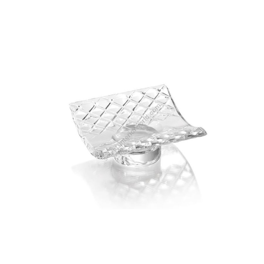 Italian hand-cut crystal set with three-dimensional rhombus pattern. Soap Dish. Functional elements that create an extremely elegant, welcoming and high-value bathroom.