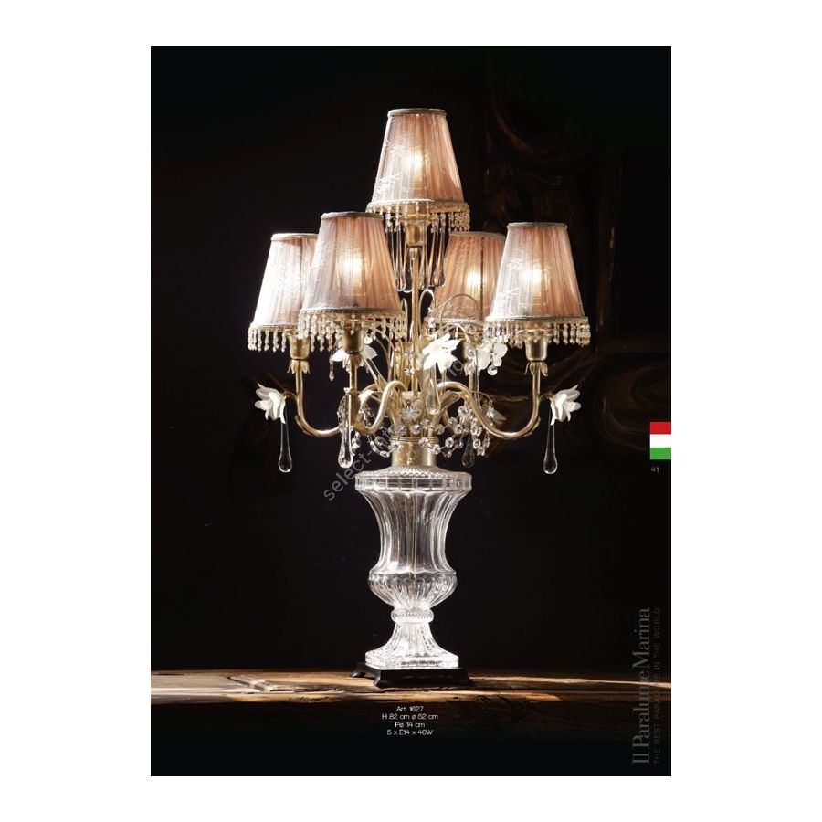 PEARL Collection: 5 lights Table Lamp with clear Florentine crystal vase and gold metal, decorated with Murano glass flowes and drops and hand-made lampshades. Lighting item that diffuses the light with great effect in the surrounding environement creating a warm and welcoming atmosphere.