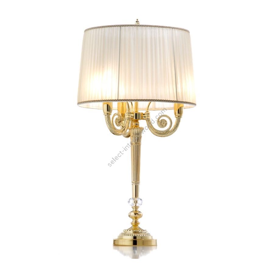 Table lamp in casting brass and crystal Asfour with lampshade. Lighting item that diffuses the light with great effect in the surrounding environement creating a warm and welcoming atmosphere.