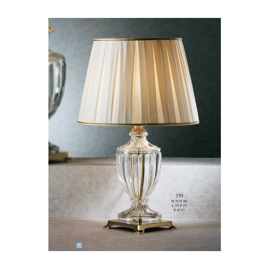 Table lamp in Florentine crystal with silk pleated lampshade. Lighting item that diffuses the light with great effect in the surrounding environement creating a warm and welcoming atmosphere.