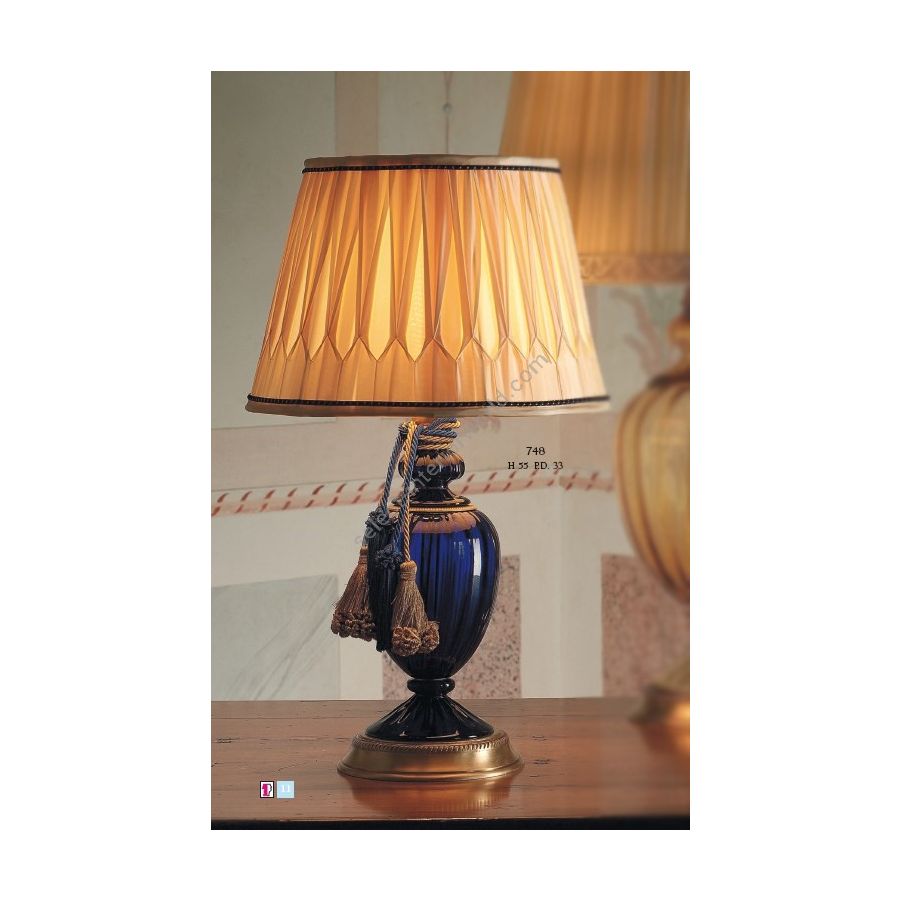 Murano Glass table lamp with Amber or blue lampashade. Tassel not included. Lighting item that diffuses the light with great effect in the surrounding environement creating a warm and welcoming atmosphere.
