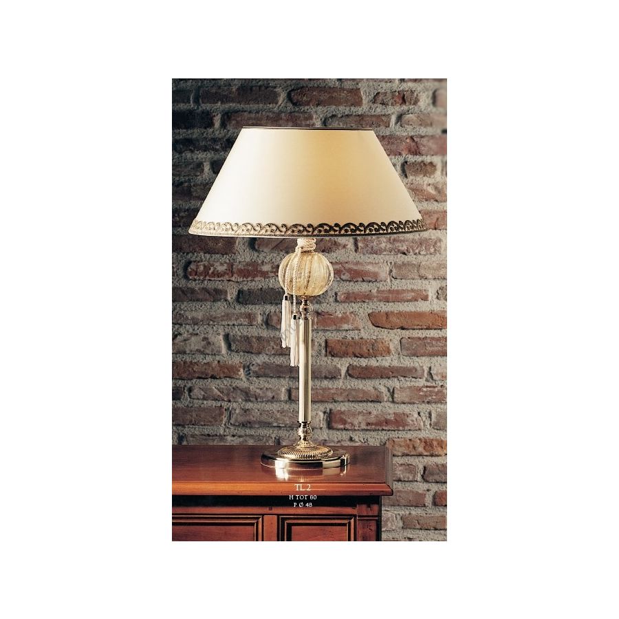 Murano Glass table lamp with lampshade - tassel not included. Lighting item that diffuses the light with great effect in the surrounding environement creating a warm and welcoming atmosphere.