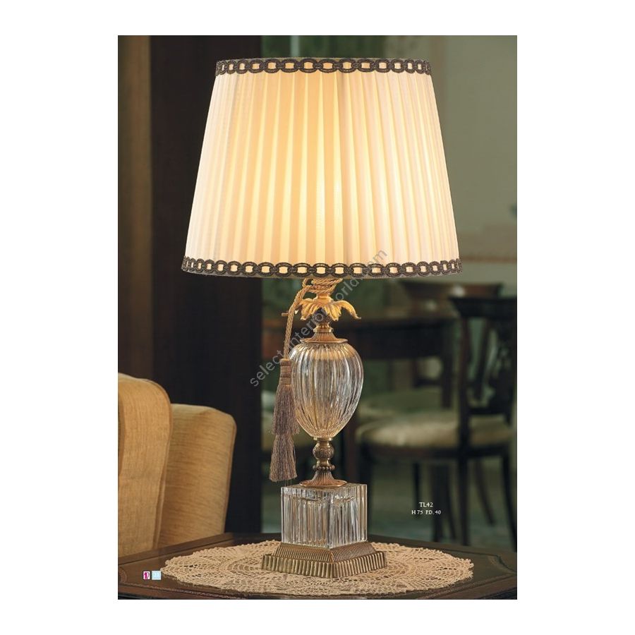 Crystal Table lamp with lampshade. Tassel ""Fascetta"" not included in the price. Lighting item that diffuses the light with great effect in the surrounding environement creating a warm and welcoming atmosphere.