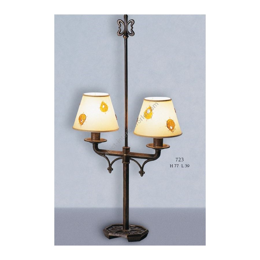 Antique Florentine lamp with 2 lights and conical lampshade. Lighting fixture that diffuses the light into the surrounding environment with great effect, creating a warm and welcoming atmosphere.