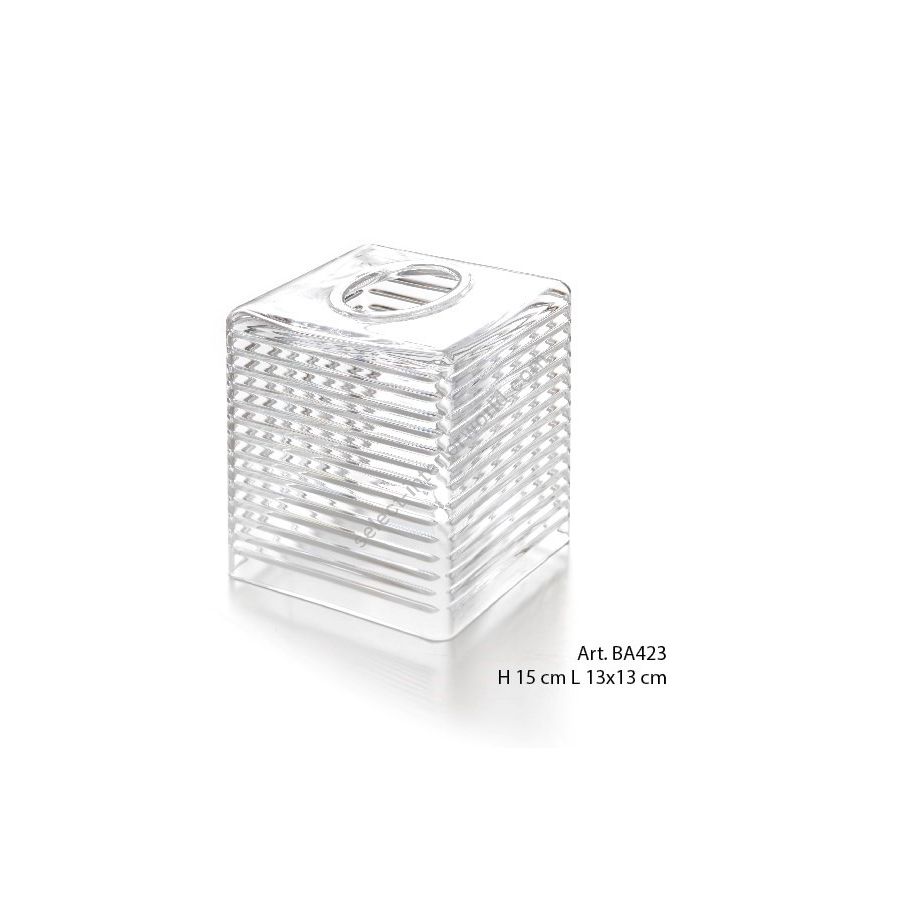 Italian hand-cutted crystal tissue box. Functional elements that create an extremely elegant, welcoming and high-value bathroom.