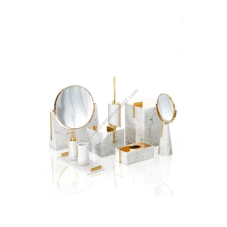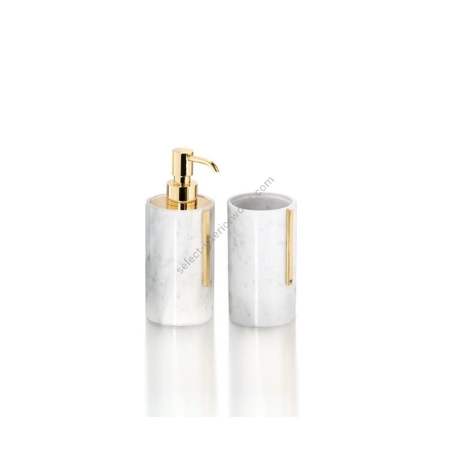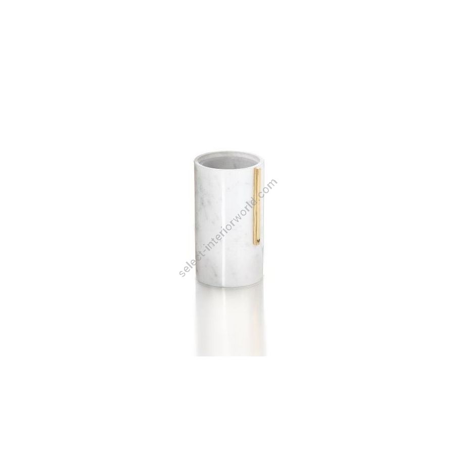 Toothbrush holder in Carra Marble decorated with gold brass element. Functional elements that create an extremely elegant, welcoming and high-value bathroom.