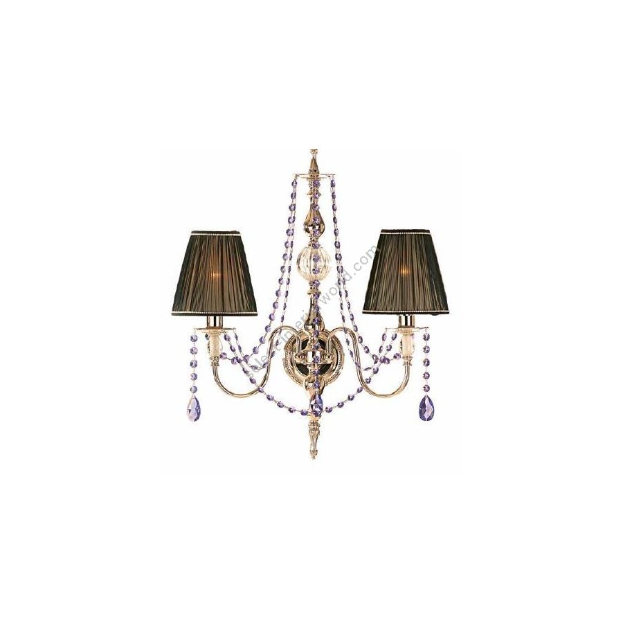 Wall lamp with 2 lights with Swarovski® pendants. Lighting fixture that diffuses the light into the surrounding environment with great effect, creating a warm and welcoming atmosphere.