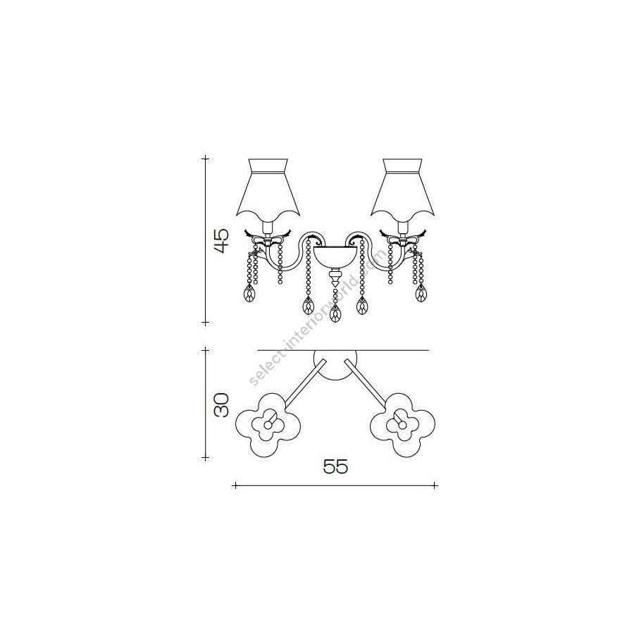 Wall lamp with lampshades and pink crystal pendants. Lighting item that diffuses the light with great effect in the surrounding environement creating a warm and welcoming atmosphere.