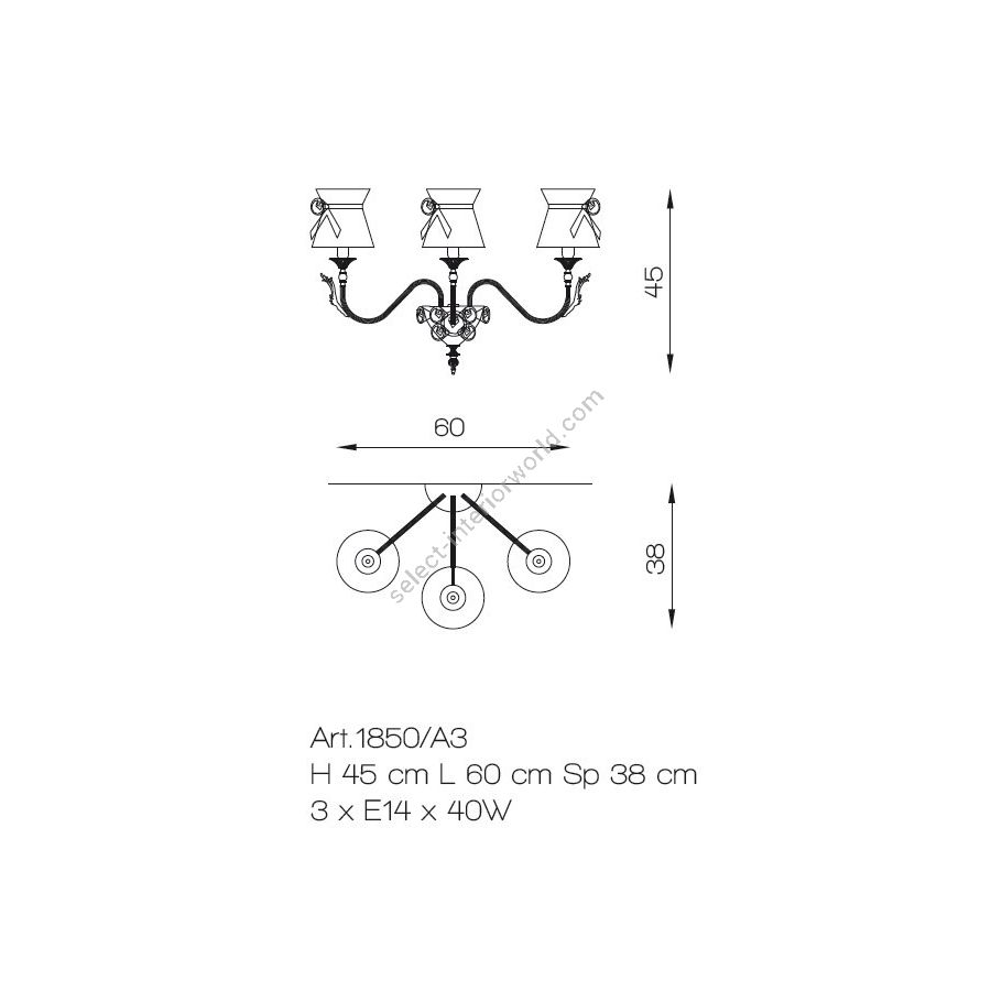 Bulbs: 3 X E14 X 40WWeight: 12 kg